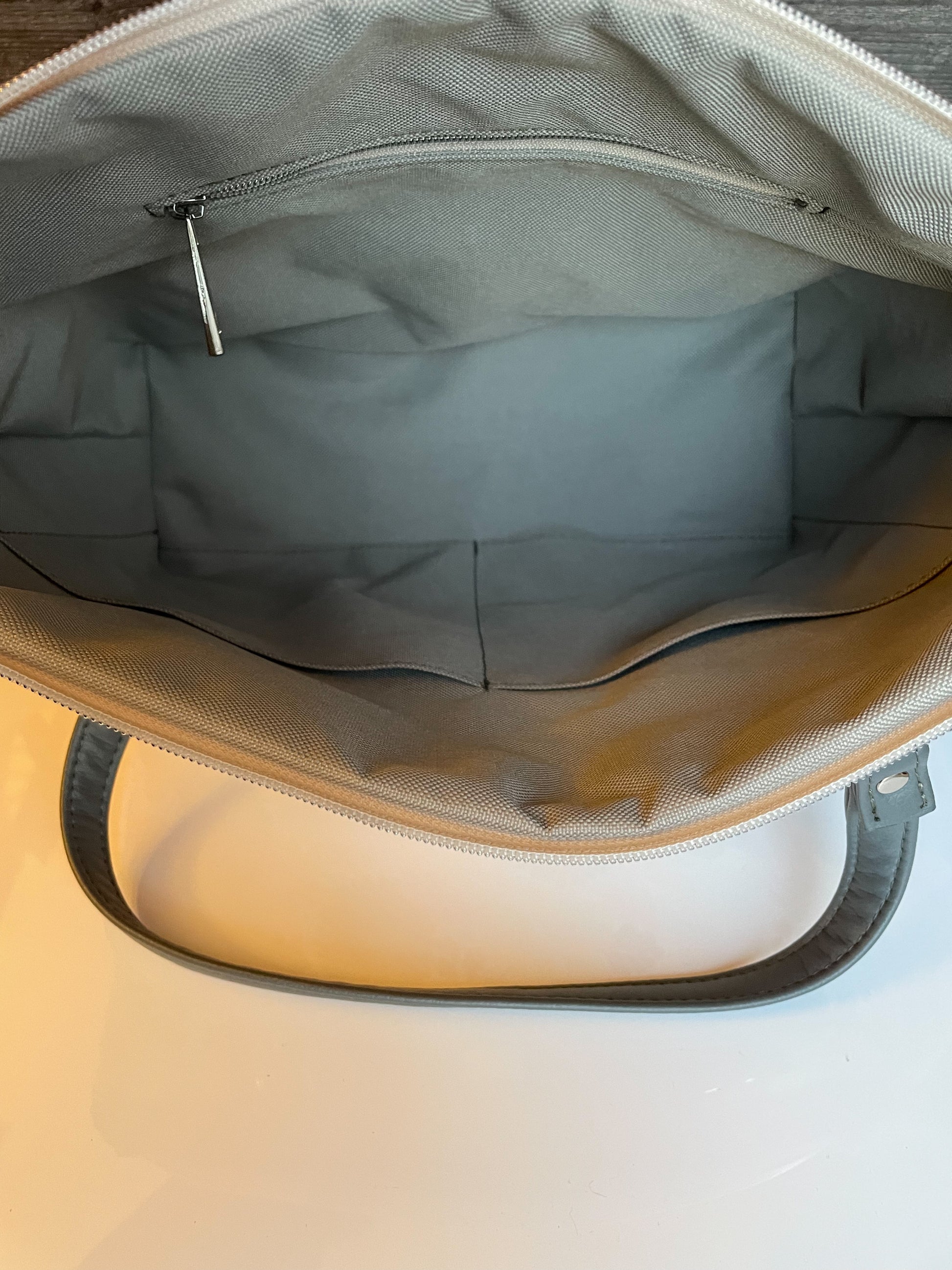 This timeless bag measures 12” wide at the bottom tapered to 14” wide at the top, 11.5” tall and 4” deep. It features 2 interior slip pockets and one interior zippered pocket. The handles have an 11” drop and are perfect for carrying this bag over your shoulder!