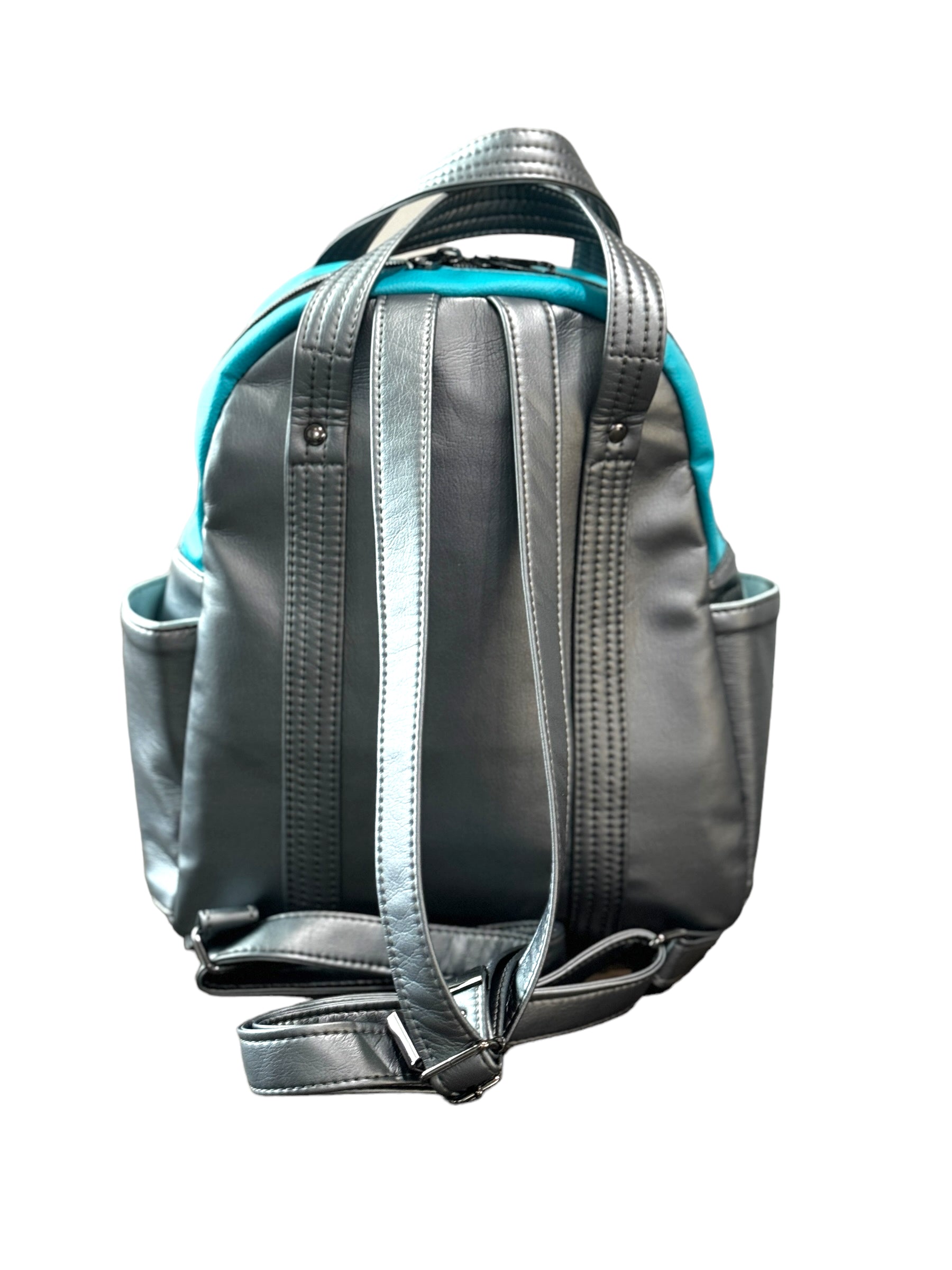This medium sized backpack has a final size of 13”H x 12”W x 4”D. It features adjustable shoulder straps as well as grab handles! Inside there is a large slip pocket and a zippered pocket as well! The front has 2 generously size slip pockets! One even has a turn lock for your valuables! You can take this gorgeous bag anywhere!!
