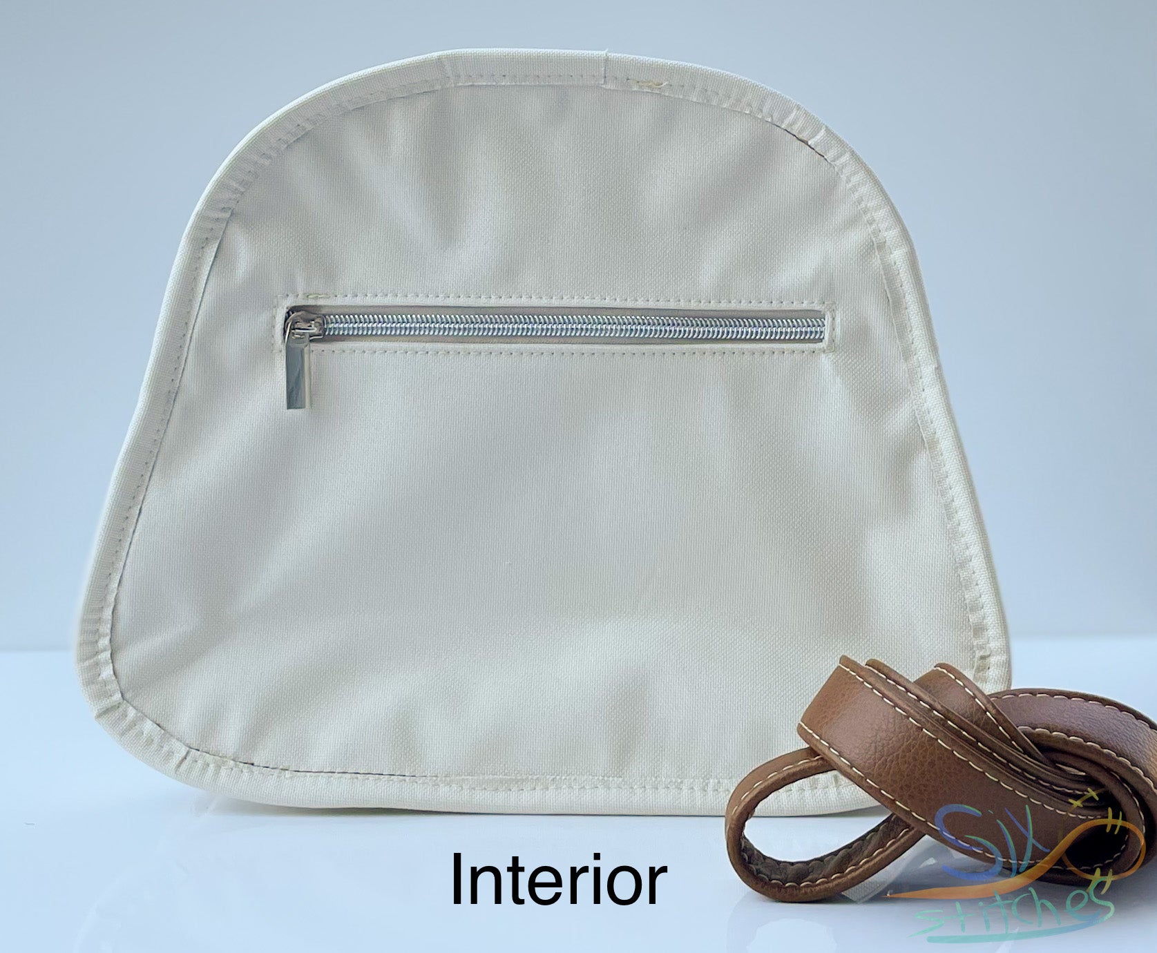The mini bowler bag features an exterior slip pocket with magnetic flap closure on the front, standard slip pocket on the back, a zippered interior pocket and a divided interior slip pocket. The interior is waterproof canvas and exterior is faux leather. An adjustable strap is included. The finished size of the bag is 9”H x 10.75”W x4.25”D.