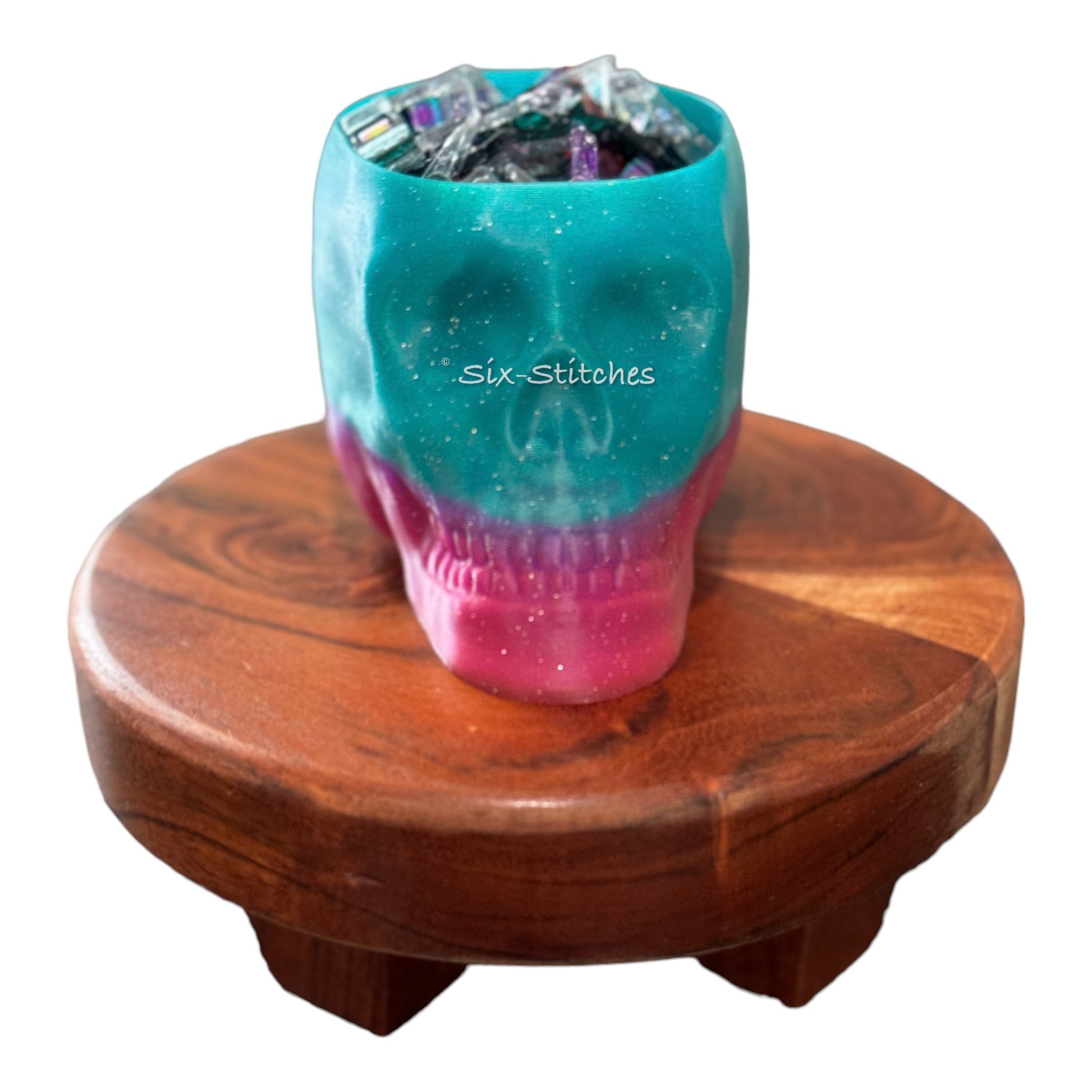 Looking for a cute and functional way to organize your sewing clips? Look no further than this skull-shaped bowl! 3D printed from high-quality PLA, this bowl is perfect for holding all of your sewing clips when they're not in use. Its unique design is sure to add a touch of whimsy to any sewing room or workspace, while its sturdy construction ensures that it will last for years to come. So why wait? Order your skull-shaped sewing clip bowl today and get organized in style! Bowl holds approximately 50 "wonder style" clips with room to spare.